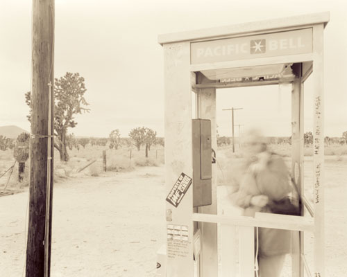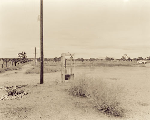 My second trip to the Mojave Phonebooth was a few years later when I was leading a photography trip for some fellow photography geeks with the local Sierra Club chapter. My trips are often a little offbeat, particularly for people wanting to pad their portfolios with more photos of rocks and sunsets. (Don’t get me wrong–I still have a weakness for “nature photography” or whatever you call this West Coast, Weston- and Adams- and Porter-influenced way of seeing the world.) The people on this trip were a tad puzzled by my insisting that we visit this phonebooth in the middle of Cima Dome, but I promised them it’d be an interesting detour.