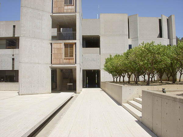 “I would not put a tree or blade of grass in this space. This should be a plaza of stone, not a garden.” I [Kahn] looked at Dr. Salk and he at me and we both felt this was deeply right. Feeling our approval, he added joyously, “If you make this a plaza, you will gain a facade–a facade to the sky.”