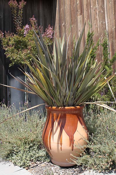 Our last winery stop, Mazzocco Vineyards, also featured a spiky plant–a flax–planted in a big pot–this one a model with beautifully dripping glaze.