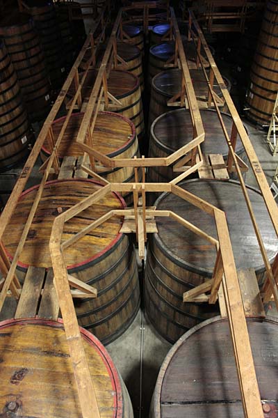 Stop #1 was the largest, most industrial place that we were to visit that day, Rodney Strong Vineyards. You could stroll around an elevated perch and take a look at the oak casks and the stainless tanks holding their next bottlings.