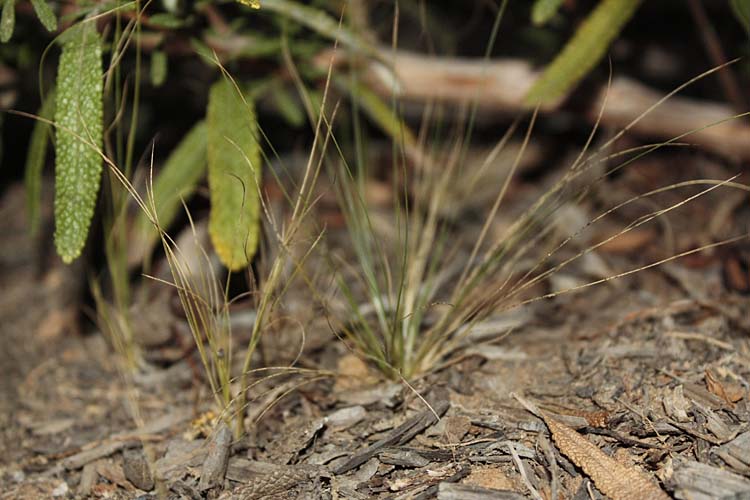 So how bad was the feathergrass problem? Here’s a shot underneath a black sage in the back yard, no closer than seventy-five feet from the nearest adult feathergrass plant capable of setting seed. The seed just blew downwind and set up household in the sheltered germinating conditions in the shade of the sage. Other areas of the garden will look like this when the rains begin again and all the banked seed begins to germinate. I hate to think that these might get to the local urban canyon, four houses away.