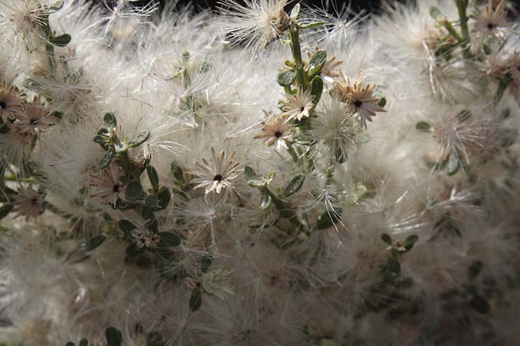The eastern version, Baccharis hamilifolia, has bloomed here all month, getting fluffier all the time.