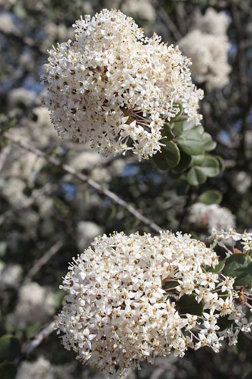 Ceanothus season is here in force. One of the local stars is a species with the unfortunate common name of “warty-stem ceanothus.” Neither is its Latin name of Ceanothus verrucosus especially glamorous. But hopefully you can see how cool a plant it is in these photos.