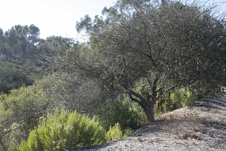 Last November these ceanothus were stemmy but gracefully-branched shrubs. Adapted to survival for many months without water its leaves are tiny and sparse. Still you could easily walk past them.