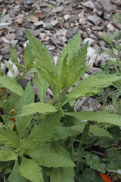 Epazote (Dysphania ambrosioides). I won’t quite call planting this Mexican herb a mistake, since I use occasionally in cooking. It does spread about the garden a bit, however, and pops up in unexpected places. There are reports [ including this one ] that it’s colonized parts of New York’s Central Park–though that’s not my doing. I popped over to Wikipedia and learned this pretty interesting detail I’d never heard before: “Epazote essential oil contains ascaridole…; in pure form, it is an explosive sensitive to shock.” Botanical TNT–Wild!