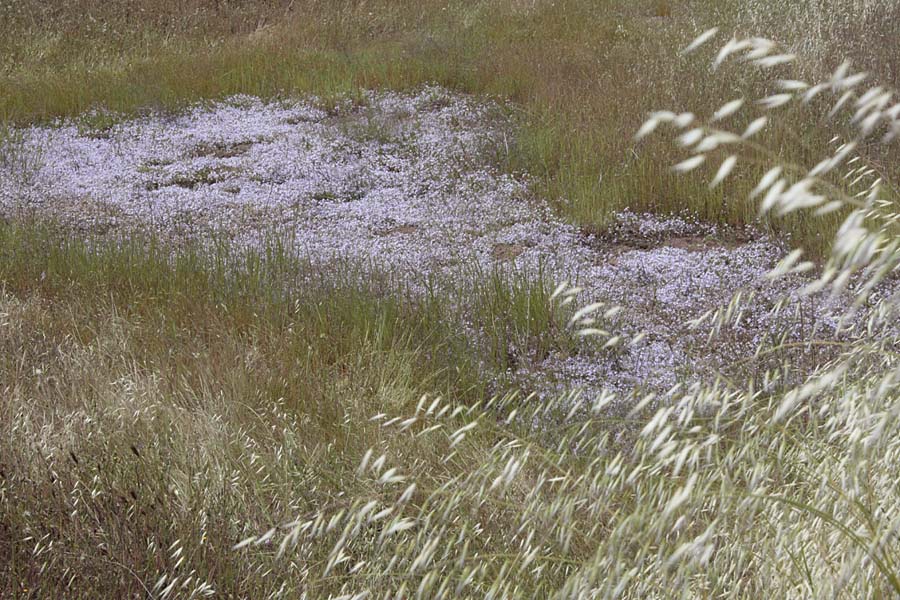 The superstar of the pools last week, however, was the toothed calicoflower, Downingia cuspidata. The way it grows only in the pools creates a really cool effect when it blooms. The land around the pools is whatever color the chaparral is, but the pools become this solid mass of soft lavender.