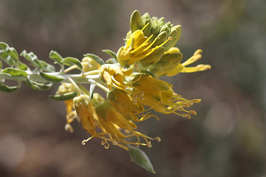 Bladderpod (Isomeris arborea) is a reliable bloomer for the times of year when most of the other natives have stopped blooming. It’s never covered with flowers, but there always seem to be a few on each of the ends on its branches.