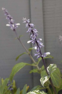Probably the most remarkable thing blooming is this, a variegated mutation of Salvia divinorum.
