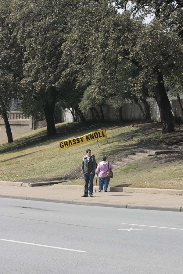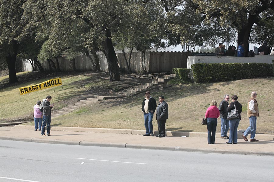 Down below there’s an embankment planted with grass, the “grassy knoll” that figures in some scenarios as the location of a possible second gunman.