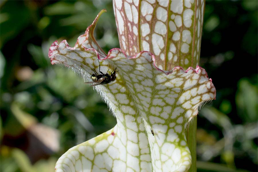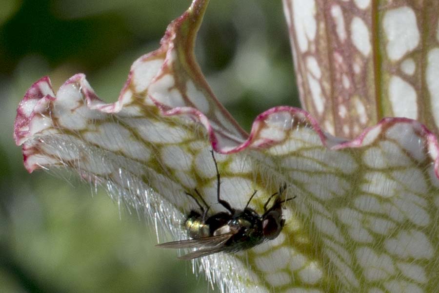 Or how about getting really close, to take a really good look at the bigger fly? Or how about wanting to take a look at the hairs on the interior of the pitcher that direct insects downward, into the tube, into the digestive juices, never to escape. This is where the higher resolution original image gives you more options.