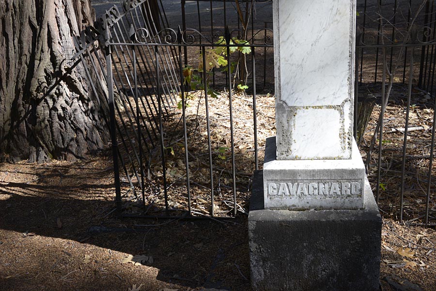 G. B. Cavagnaro’s resting place also sported a traditional marker. This one was white marble, incised with oak leaves and acorns, a nod to the landscape all around. When I entered the cemetery everything was in shade but for this shaft of brilliant white stone. Talk about theatrical.